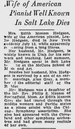 Research Notes: from yearCHAN: _WT_USER phild Edith married Leslie John Hodgson, son of John Hodgson and Clarissa Taylor, on 14 Aug 1920 in Springfield, Hampden, Massachusetts, United States of America. (Leslie John Hodgson was born on 13 May 1879 in Cartwright, Durham, Ontario, Canada, died in Mar 1970 in New York, New York, United States of America and was buried in Wilcox Cemetery, Berlin, Hartford, Connecticut, United States of America.) |
